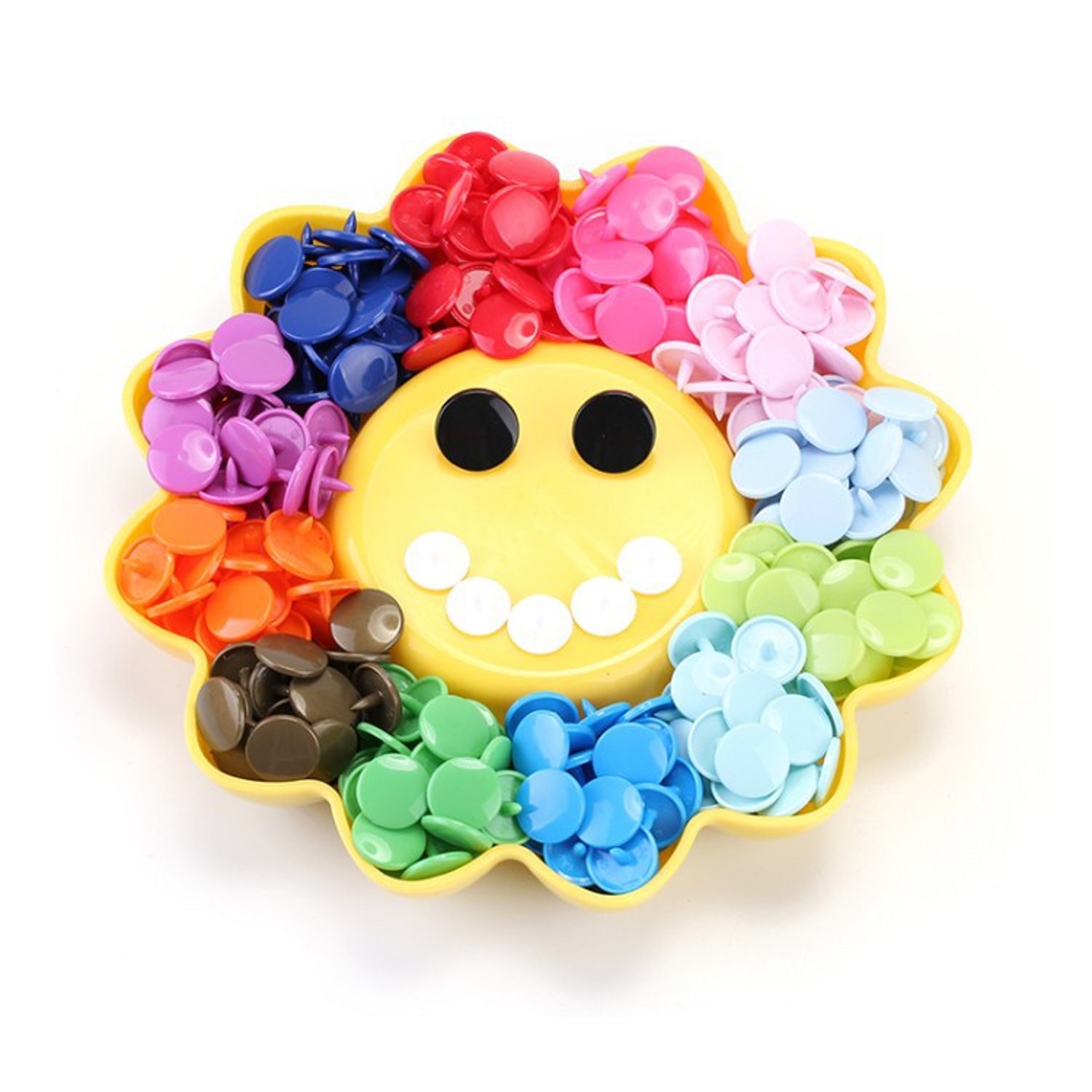 1. Snap button materials , have PP or POM materials . 2. Regarding size : T3 (10.7mm face) , T5 (12.4mm face or 11.8mm face) , T8 (14mm face ) size 3. T3 mainly working for 1mm thickness materials . T5 mainly working for 1.5mm thickness materials . T8 mainly working for 2mm thickness materials . 4. Plastic snap button have many different color .